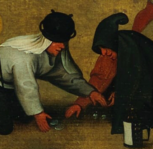 Au XVIe siècle quatre peintres : Piéter Brueghel, Jan van Eyck, Jérôme Bosch et Pierre Paul Rubens, de l’École flamande ont influence notable sur l’art et la peinture européenne. Brueghel l’ancien est le premier d’une dynastie de 4 générations de peintres flamands. Le peintre appréciait se mélanger aux milieux paysans, participant à des mariages et rassemblements populaires. Il reproduit donc fidèlement les scènes qu’il observe de leurs fêtes et de leurs jeux, avec enjouement et finesse. L’œuvre présentée nous aide à mieux connaître la vie des flamands du XVIe siècle.