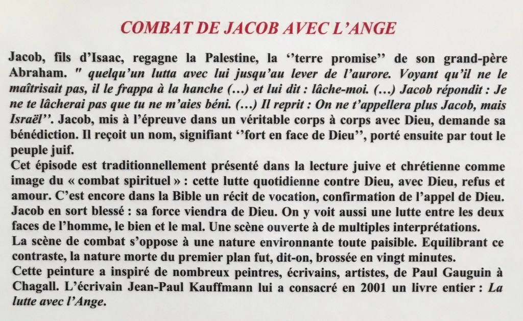 Cette toile illustre l’épisode du buisson ardent en allant plus loin, c’est le point de départ de l’Exode. Il est étonnant de constater la ressemblance entre le buisson en flammes et les corps tourmentés des guerriers dont les bras rouges s’élèvent comme les branches en feu. Marc Chagall nous invite ainsi à nous rappeler que cette libération du peuple juif est passée par bien des tourments.
